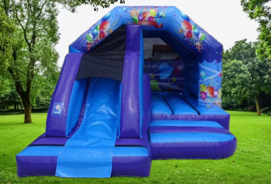 Bring excitement and color to your next event with our vibrant Party Front Slide Combo. Designed in eye-catching blue and purple hues with festive balloon prints, this inflatable combo instantly sets the mood for fun at any party, birthday, wedding, school fete, or community gathering. Whether your event is big or small, our Party Front Slide Combo is the perfect centerpiece for entertainment, laughter, and unforgettable memories!