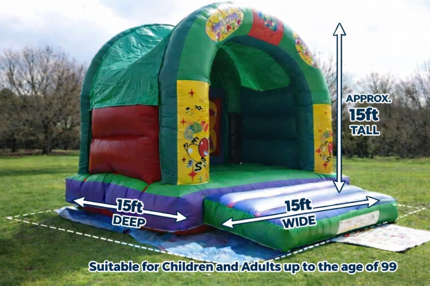 Size: 15ft (W) x 15ft (D) x 151ft (H)Suitable for: Adults or Children This Party Themed Bouncy Castle is very popular at all parties and occasions of any kind. With reinforced seams , built in shower cover, extra deep bouncing bed and high walls. The front panels feature Party Themed images. This inflatable has been the star of many Beach themed parties in and around East London. Availability for this castle is limited as bookings are often made weeks in advance, so we advise you to call as early as possible to avoid disappointment! We're a member of BIHA, TIPE, and NAIH and we strive to maintain the highest standards in everything we do. This castle, like all of our units, has a valid RPII Certificate, and its blower is regularly PAT tested. If you have any further questions our experienced and friendly staff will be more than happy to give you full advice on how to safely manage your castle once it has been dropped off. Our castles are always cleaned between hires and our stock is rotated to ensure all castles are under three years old and in the best possible condition.